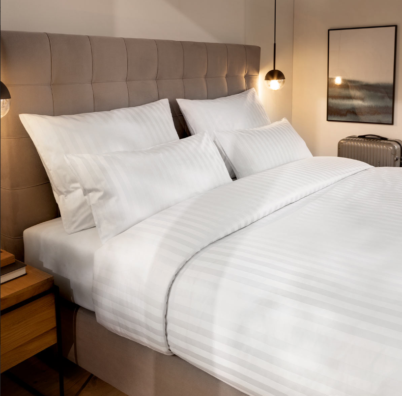Kvalitné biele hotelové obliečky Atlas grádl sú vyrobené z česanej bavlny s vysokou gramážou 140g/m2. Tieto 20 mm rebrované obliečky dodajú vášmu interiéru luxusný vzhľad. Táto posteľná bielizeň je vhodná na pranie v priemyselných práčovniach, takže výborne znáša pranie na 95°C a použitie chlóru. Pri výrobe sa dbá na to, aby bola bielizeň rovnomerná, vďaka čomu optimálne a hladko prechádza mangľom.