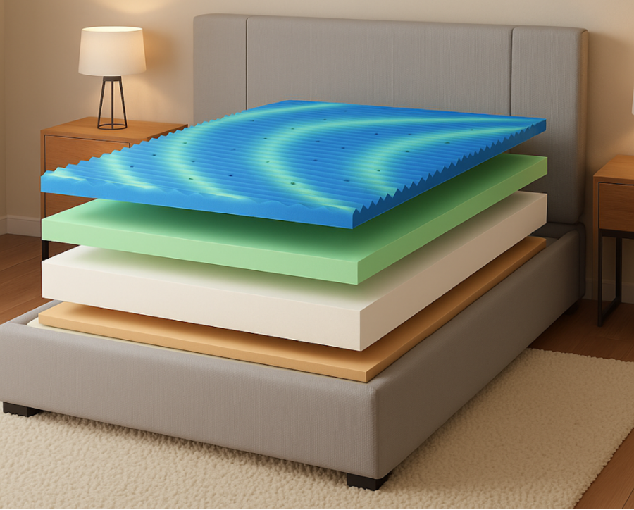 Na druhej strane sa nachádza komfortná vrstva z HR peny (2,5 cm) a perforovanej Hybrid peny (2,5 cm), ktorá zabezpečuje vyššiu pružnosť, priedušnosť a lepšie rozloženie tlaku, čím zvyšuje celkový komfort počas spánku.