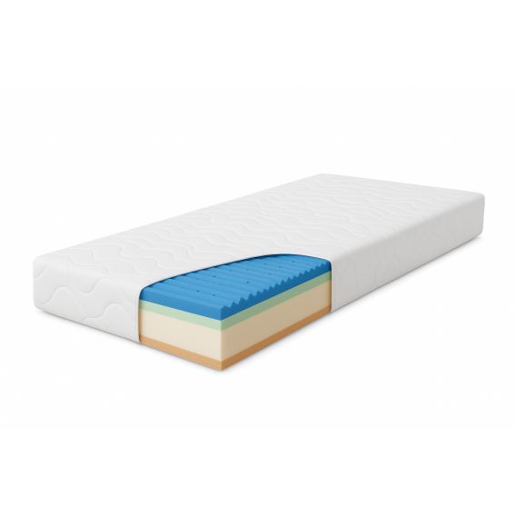 Matrac disponuje obojstrannou konštrukciou s dvomi úrovňami tuhosti, vďaka čomu sa dokáže prispôsobiť rôznym preferenciám hostí. Tuhšia strana s vrstvou 3 cm profilovanej PUR peny v kombinácii s 12 cm pevným PUR jadrom poskytuje vysokú nosnosť, stabilitu a optimálnu oporu chrbtice.